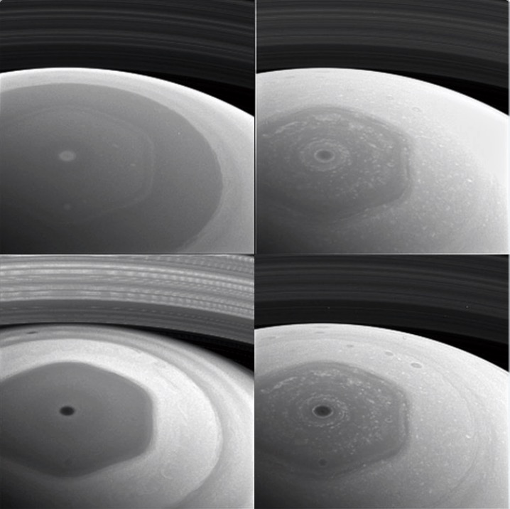 Le 4 décembre dernier, la sonde spatiale a effectué sa première plongée dans les anneaux de Saturne et si l’objectif est d’échantillonner des particules et des gaz présents dans ces anneaux, Cassini en a aussi profité pour capturer des images au plus près de la planète. Elle vient donc de fournir des images inédites du pôle Nord de Saturne qui a un étrange hexagone dans son atmosphère. D’autres images de meilleure résolution sont attendues dans les prochains jours.