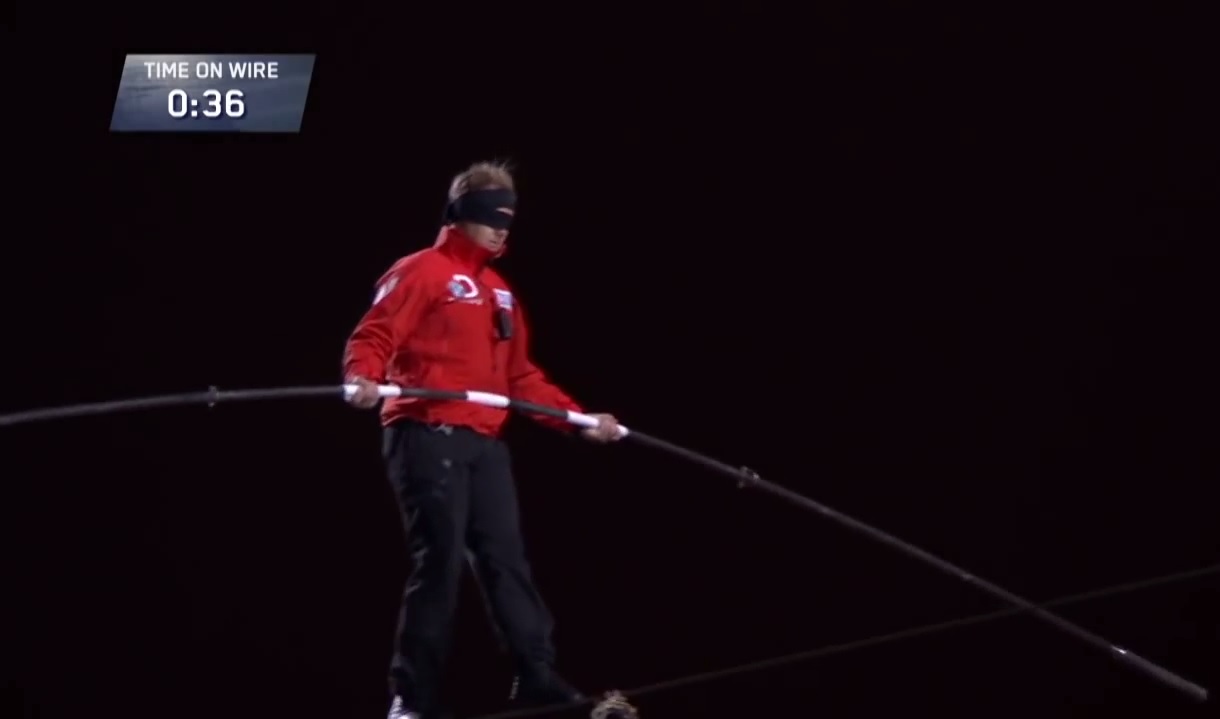 Dans la nuit du dimanche au lundi 3 novembre, le funambule américain Nik Wallenda a réalisé un défi particulièrement insensé, traversant un câble reliant deux gratte-ciels les yeux bandés et sans aucune protection en cas de chute.