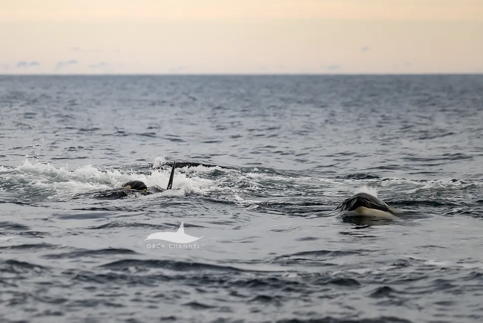 Ce matin-là, près de l’île de Laukøya dans le nord de la Norvège, plusieurs bateaux d’observation croisaient dans les eaux glacées de Skjervøy. Soudain, un comportement inhabituel attire l’attention : un groupe d’orques, majoritairement des femelles et des jeunes, s’agite frénétiquement à la surface. L’ambiance est électrique, presque anxieuse.