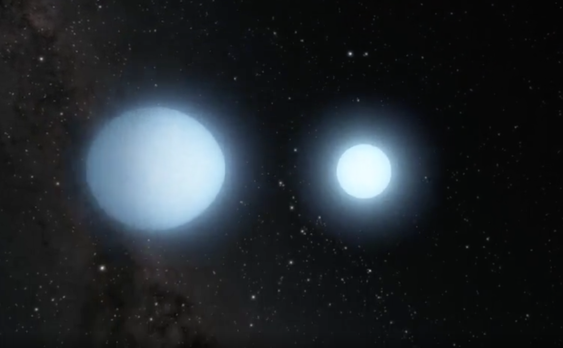 Une étoile de type solaire, à mesure que son carburant s’épuise, se gonfle peu à peu en une géante rouge. Au terme de son évolution, une fois que toutes ses couches de gaz seront expulsées, il ne restera plus qu’un cadavre d’étoile : une naine blanche. Imaginez alors un objet d’une masse semblable à celle du Soleil, mais compacté en un diamètre comparable à celui de la Terre. Mais dans l’Univers, il arrive souvent que les étoiles évoluent par deux. Et si le timing le permet, deux étoiles peuvent alors se transformer en naines blanches, orbitant l’une autour de l’autre. Sur le papier, ces configurations semblent assez courantes, mais les astronomes ont rarement eu l’occasion d’en observer directement.