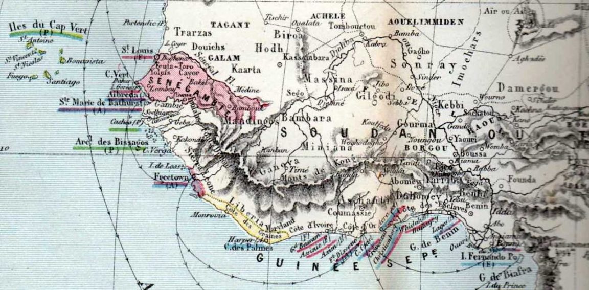 Plusieurs cartes d’Afrique élaborées à l’époque faisaient figurer une chaîne de montagnes qui n’a jamais existé : les monts de Kong. Évidemment, les cartes modernes ne représentent plus cette chaîne de montagnes qui avait été mentionnée de façon délibérée.