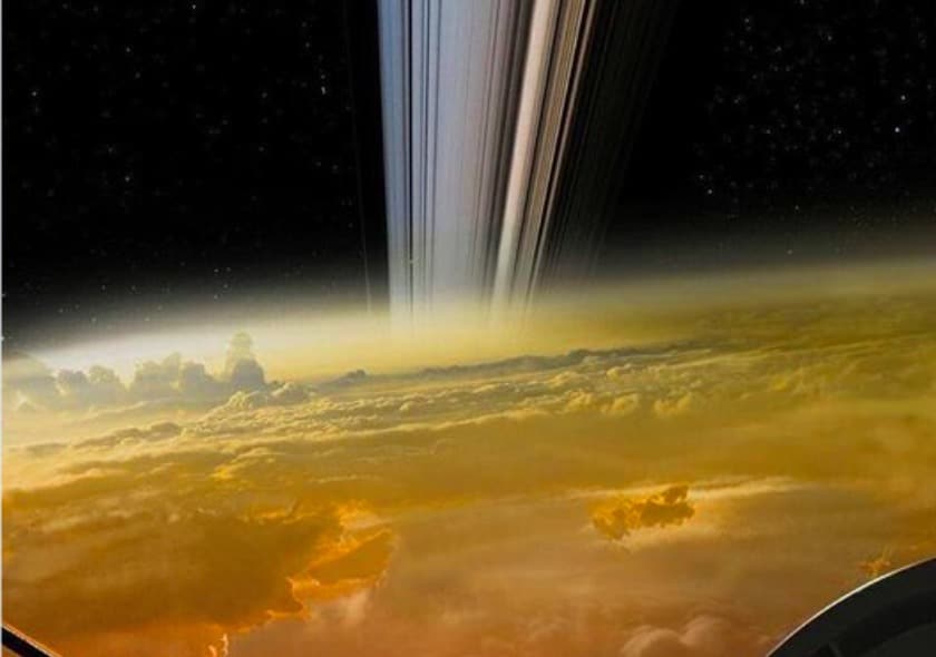 Les véritables images (ci-dessous) renvoyées par Cassini avant sa mort ne sont pas aussi « précises », mais elles n’en restent pas moins exceptionnelles. Les anneaux apparaissent, bien que flous, traversant le bas des images.