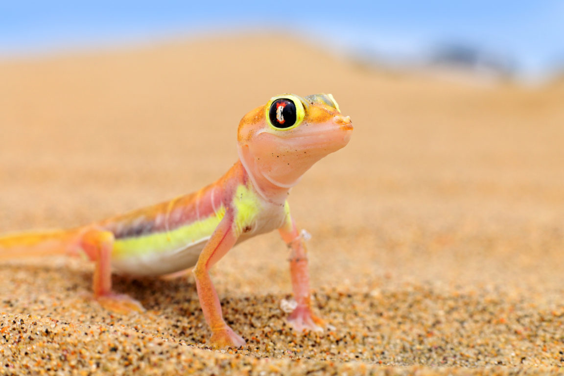 Une espèce de gecko en particulier a fait l’objet d’une publication dans la revue Scientific Reports le 11 janvier 2021. Une équipe de la Collection d’État zoologique de Munich (Allemagne) s’est en effet intéressée aux Pachydactylus rangei, une espèce endémique du désert du Namib en Afrique australe. Selon les experts, ce gecko est capable de biofluorescence. Les auteurs de l’étude rappellent que ce phénomène est très répandu dans le monde naturel. En revanche, l’animal en question est un des seuls vertébrés terrestres connus à en être capable. Toutefois, sa brillance est bien plus importante que celle précédemment observée chez les caméléons en 2018.