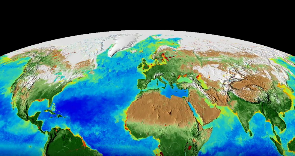 De plus, il est également possible de voir la végétation s’épaissir par un vert intense, au fur et à mesure que se déroule la photosynthèse. La vidéo montre également l’activité des océans, à l’origine de la création de la moitié de l’oxygène disponible sur Terre. En effet, ce rôle de photosynthèse est joué par le phytoplancton, c’est-à-dire l’ensemble des organismes végétaux vivant en suspension dans l’eau.