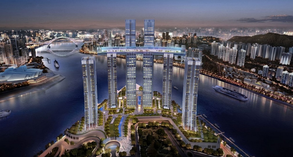 Il s’agit d’un complexe de huit gratte-ciels, dont deux dépasseront les 350 mètres de hauteur tandis que les six autres seront moins grands (250 m). La particularité de cet ensemble est qu’une partie des plus petits gratte-ciels seront coiffés d’une passerelle cylindrique horizontale de 300 mètres de long qui permettra de relier les bâtiments entre eux.