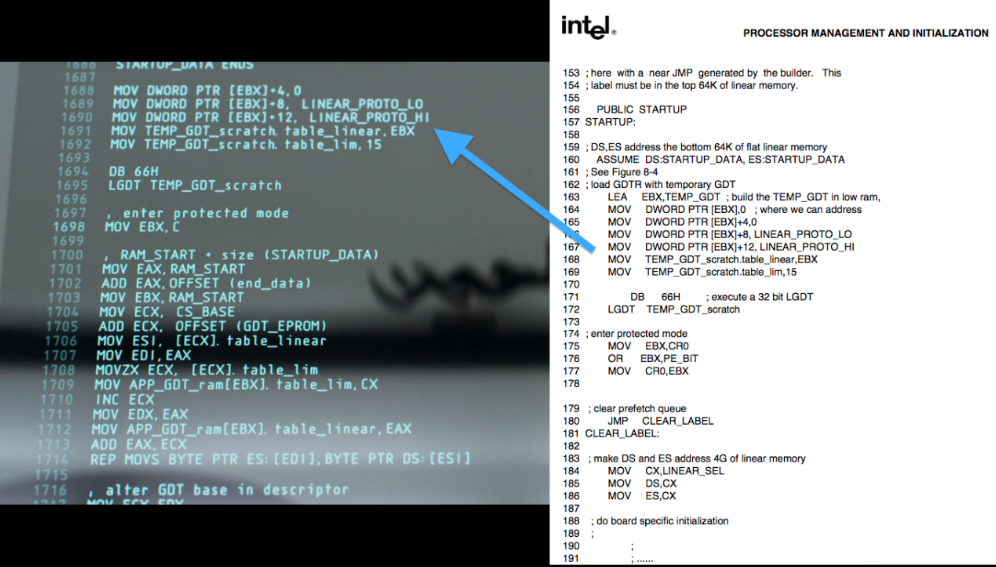 Le blog Source Code in TV and Films a donc été lancé avec l’image ci-dessous, tirée du film Elysium sorti en 2013. Il s’agit d’un code tout simplement tiré d’un manuel d’utilisation de la marque Intel.