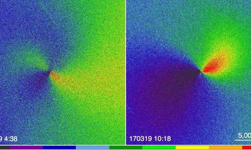 Ce résultat implique par ailleurs que la comète « a une forme très allongée, une faible densité et que les jets sont proches de la même extrémité du corps », notent les chercheurs. Les résultats préliminaires ont été présentés lors de la 49e réunion de la Division des sciences planétaires de l’American Astronomical Society qui tient actuellement aux États-Unis. D’autres études seront nécessaires pour tenter de comprendre l’ampleur de ce phénomène.