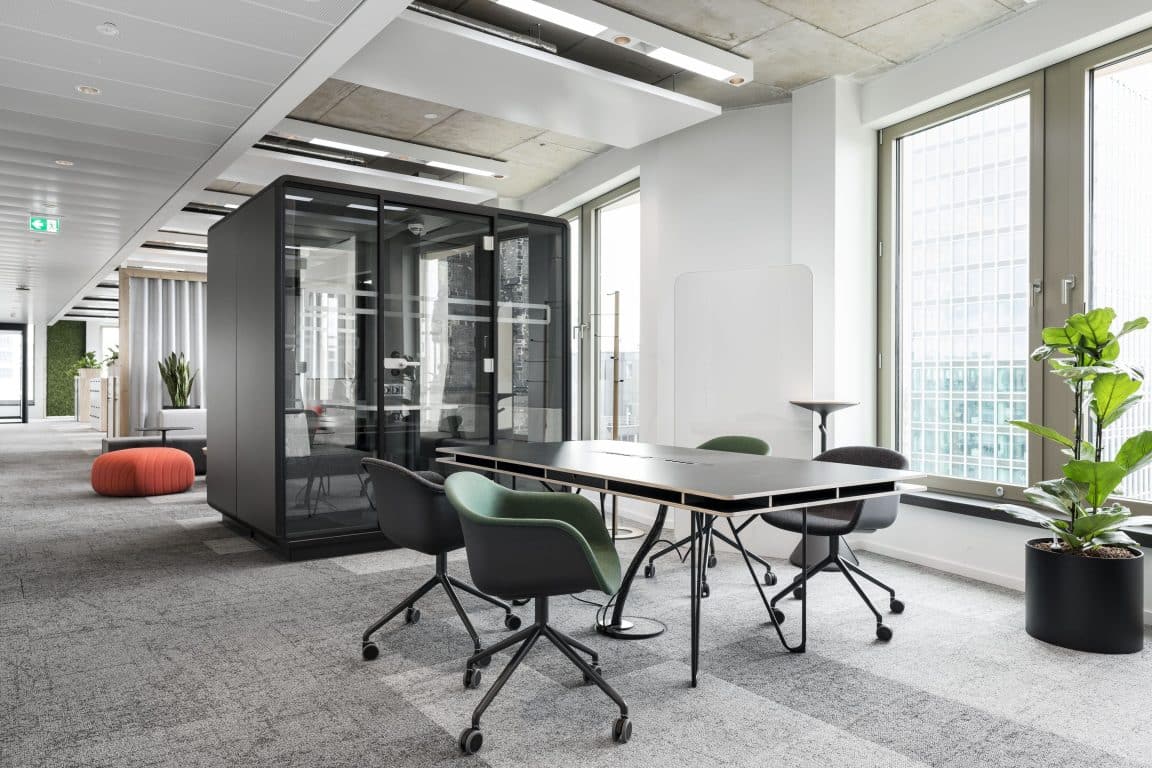 Dans un modèle de travail hybride, où les employés partagent leur temps entre l’exercice de leurs responsabilités professionnelles à la maison et dans l’entreprise, la confidentialité et la collaboration prennent une nouvelle dimension. Il ne s’agit pas seulement de séparer les bureaux à l’aide de panneaux acoustiques, mais aussi de pouvoir passer en douceur de l’exécution des tâches à son poste de travail à un endroit où le niveau de confidentialité acoustique et visuelle est plus élevé. Les employés se sentent ainsi plus à l’aise et plus autonomes, ce qui se traduit par un meilleur équilibre émotionnel.