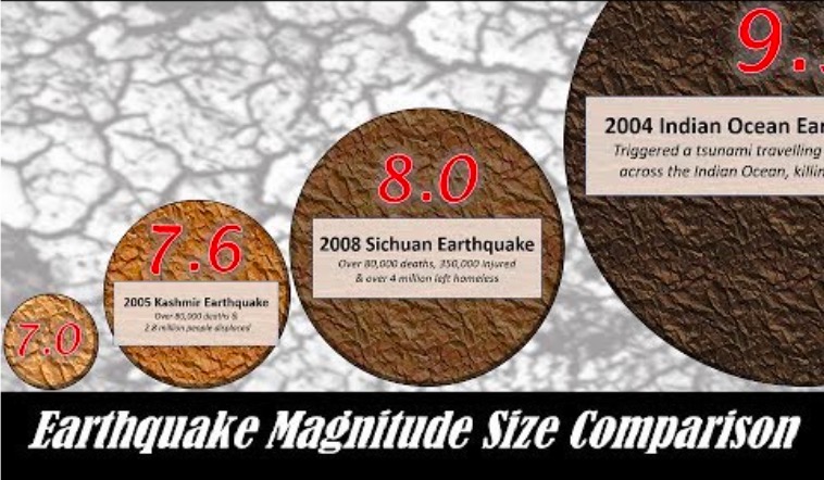 Cette vidéo nous offre une vision différente, une manière de nous rendre mieux compte de l’impact et de la puissance que peut avoir un tremblement de terre où qu’il soit dans le monde, en gardant à l’esprit que lorsqu’il évolue de +1 en magnitude, un tremblement de terre devient en réalité 33 fois plus puissant.