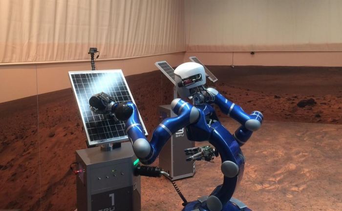 Par ailleurs, « l’intelligence artificielle permet au robot d’effectuer de nombreuses tâches de manière indépendante, ce qui nous rend moins sensibles aux retards de communication qui rendraient le contrôle continu plus difficile sur de si grandes distances », explique Neil Lii, chef de projet au Centre aérospatial allemand. Mais avant de pouvoir œuvrer sur Mars, encore faut-il pouvoir le faire sur Terre. Place donc aux tests. Le 2 mars dernier, les ingénieurs de l’Institut de robotique et de mécatronique du DLR ont installé le robot Justin dans un environnement martien simulé. Justin n’avait qu’une tâche à accomplir : l’entretien des panneaux solaires, car il y a beaucoup de poussière sur Mars. Dirigé à distance par l’astronaute américain Scott Tingle, installé dans la Station spatiale internationale, le robot a rempli sa mission avec succès.