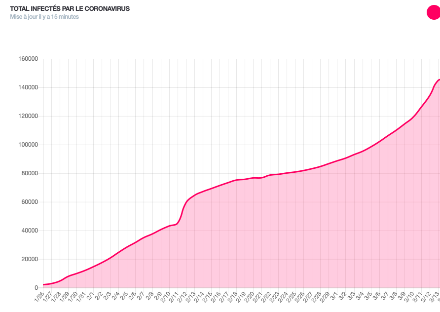 Alors que la France se dirige petit à petit vers une mise en quarantaine, l’Italie continue de compter ses morts. Il semble que notre pays mais également l’Espagne suive la même courbe de progression que le voisin italien. Par ailleurs, Donald Trump vient de déclarer l’état d’urgence aux États-Unis.