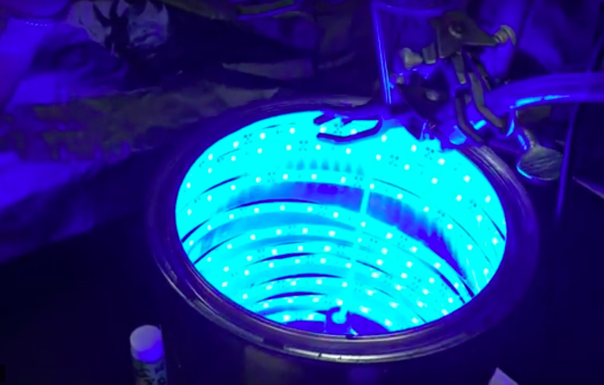 Les chercheurs ont ici combiné du titane, plus commun, avec des molécules organiques appelées N-alkyl -2— aminotere phtalates agissant comme de petites antennes pouvant absorber la lumière bleue entrante. Grâce à cet « alliage », le CO2 imprègne les molécules organiques, tandis que les « antennes » piègent la lumière et fournissent des électrons que l’oxyde de titane utilise pour convertir le CO2. Les tests ont ensuite été effectués dans un tube équipé de lumières bleues (une sorte de mini-cabine de bronzage). Le CO2 a alors été piégé, tandis que la lumière bleue fournissait l’énergie nécessaire pour le convertir en combustible solaire.