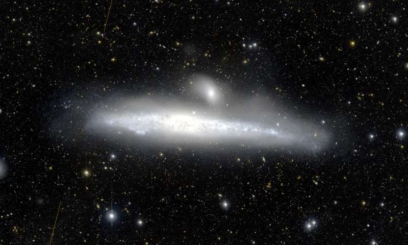 Les chercheurs expliquent avoir identifié 11 galaxies naines dans sa région extérieure, dont certaines étaient déjà connues. Les galaxies naines ne sont pas facilement détectées en raison de leur petite taille, de leur masse et de leur faible luminosité. L’équipe a également découvert deux halos stellaires en orbite autour de la galaxie : l’un, appelé Stream SE, est situé en face de celui-ci et l’autre, appelé Stream NW, est niché derrière. Se basant sur des calculs visant à estimer le contenu métallique des flux stellaires, l’équipe pense qu’il est possible que ces courants stellaires proviennent d’une interaction gravitationnelle entre NGC 4631 et une galaxie naine en orbite autour.