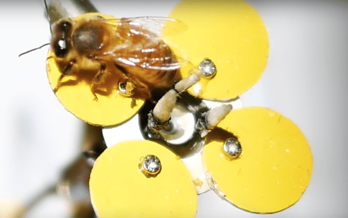 Ces fleurs robotisées sont destinées à être installées au milieu de fleurs authentiques (de Colza principalement). Celles-ci attirent les abeilles et repèrent leur arrivée par le biais d’une caméra intégrée, avant de leur distribuer directement du nectar, comme le montre la vidéo visible en fin d’article. Le créateur a élaboré plusieurs prototypes avant de trouver la forme et les couleurs pouvant attirer les abeilles de la manière la plus efficace.