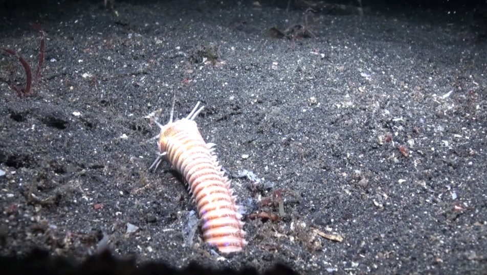 Eunice aphroditois, c’est son nom. Ce charmant animal se rencontre uniquement dans le bassin Indo-Pacifique, à des profondeurs moyennes de 150 mètres ; les baigneurs des côtes françaises n’ont donc pas de raison de s’en faire. Fort heureusement, car ce ver géant est l’un des plus grands polychètes (ver composé d’anneaux et multisegmenté, comme les mille-pattes) du monde, avec un diamètre de 2,5cm et une longueur moyenne de 1,20 mètre. Des cas extrêmes atteignant 3 mètres ont même été recensés. Son corps annelé et robuste est par ailleurs couvert de soies urticantes, dont le contact peut provoquer un engourdissement de la zone touchée chez l’homme.