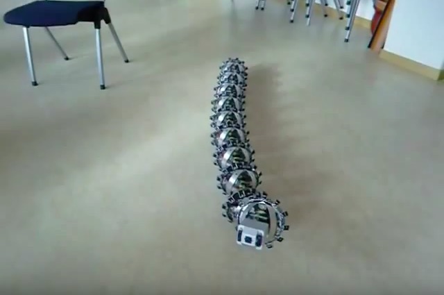 L’un de ces robots, surnommé Wheeko, se compose de dix modules circulaires motorisés articulés entre eux. Chaque module est doté d’une rangée de roulettes qui lui permettent d’onduler latéralement à la manière des serpents, de se contracter et de se vriller.