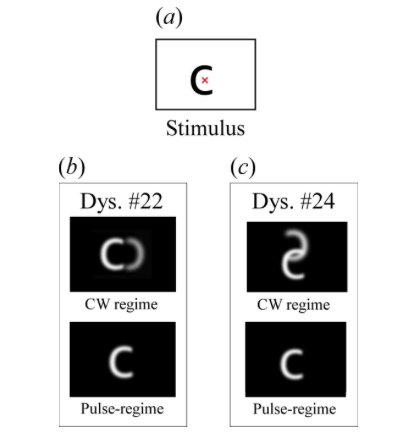 Grâce à l’utilisation d’une lampe stroboscopique à LED, ils ont pu interférer avec la deuxième image source de confusion et rendre la lecture possible (voir ci-dessous). Reliée à la grande plasticité cérébrale, cette nouvelle technologie permettrait un réapprentissage de la lecture et pourrait prochainement être utilisée par les médecins pour en réduire les troubles de la dyslexie.