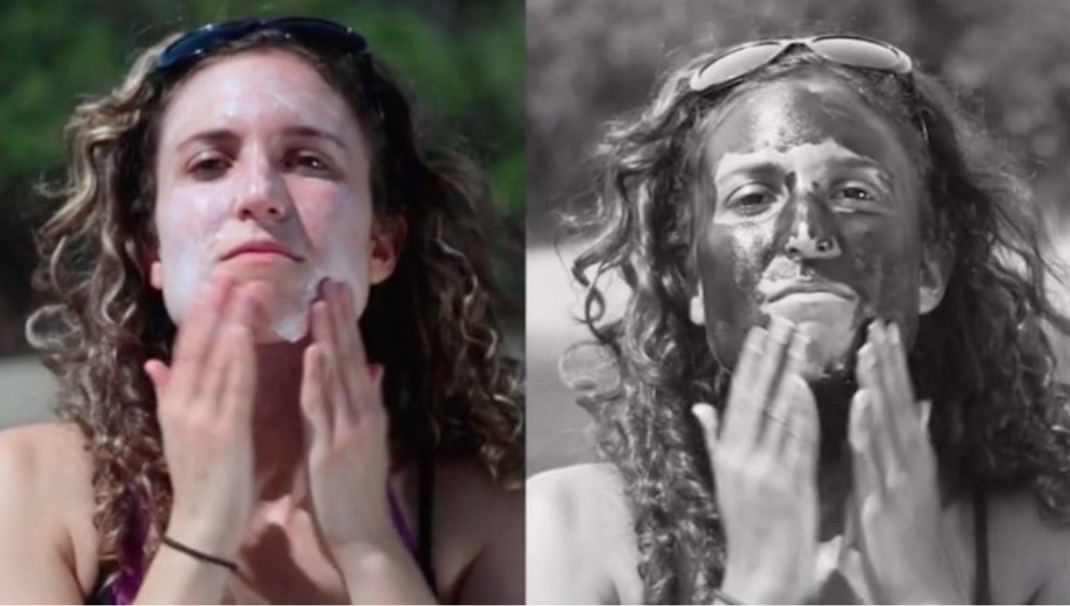 Grâce à cette vidéo, on est capables de visualiser les zones de notre peau qui sont les plus sensibles aux rayons UV. Ces zones apparaissent sous la forme de taches de rousseur qui parsèment la peau après une exposition au soleil, et l’effet est assez impressionnant lorsqu’il est demandé aux participants de s’étaler de la crème solaire.
