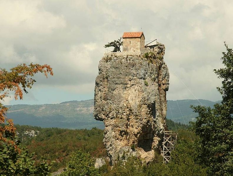 Le Piton de Katskhi s’élève à 40 mètres au-dessus du sol et est surplombé par une plateforme sur laquelle est construite une demeure de 4,5 par 3,5 mètres. Il ne s’agit pourtant pas d’une simple maison, mais de l’église Saint-Maxime-le-confesseur appartenant au culte orthodoxe et bâtie par des moines entre le XIXe et le Xe siècle.