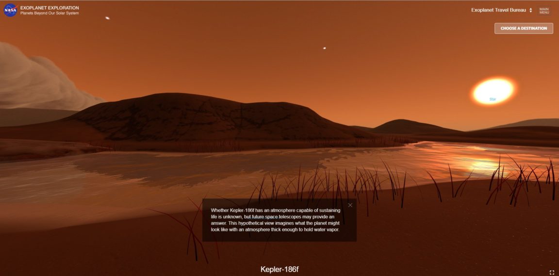 Vous pourriez, par exemple, profiter du ciel rouge sang de Trappist-1e, cette planète au grand noyau de fer installée dans le système TRAPPIST-1 à 40 années-lumière, susceptible d’abriter la vie. Vous pourriez également survoler Kepler-16b, qui fait partie d’un système de type « Tatooine » à 200 années-lumière – la plus grande planète jamais découverte en orbite autour de deux-étoiles. La NASA vous propose également Kepler-186f, l’une des premières planètes terrestres validées à orbiter une étoile lointaine dans la zone habitable. Vous la retrouverez autour d’une étoile beaucoup plus fraîche et plus rouge que notre Soleil à plus de 500 années-lumière.