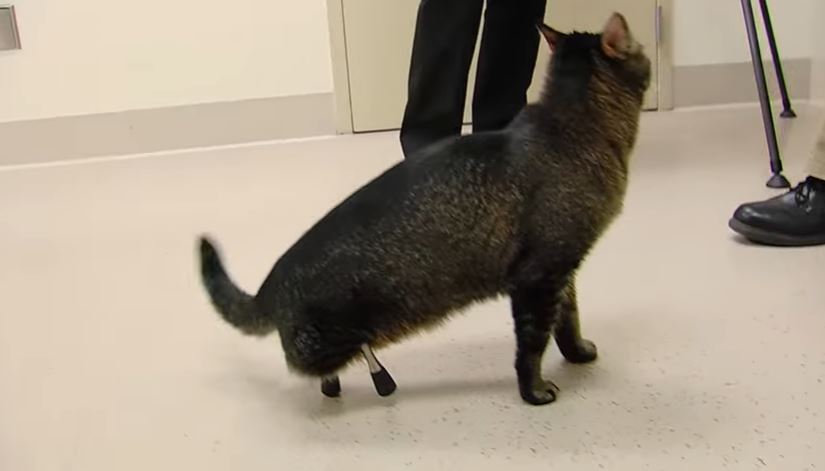 Privé de l’usage de ses pattes arrière depuis son plus jeune âge, ce chat peut aujourd’hui regarder l’avenir avec confiance. En effet, grâce à l’implantation de deux prothèses novatrices, il devrait lui être très bientôt possible de marcher, courir et sauter comme n’importe quel autre animal de son espèce.