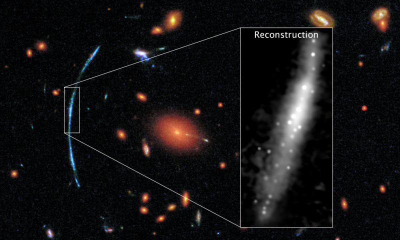 Même Hubble a ses limites, aussi pointu soit l’instrument, c’est pourquoi l’Univers lointain nous échappe. La recherche de détails plus fins exige une pensée intelligente et un peu d’aide cosmique, comme une belle et grosse lentille gravitationnelle. En appliquant une nouvelle analyse de calcul à une galaxie agrandie par une lentille gravitationnelle, des astronomes ont récemment obtenu des images 10 fois plus pointues que ce que Hubble pourrait réaliser seul. Les résultats nous livrent une galaxie ancienne estampillée de motifs brillants : des étoiles nouvellement formées. Ces résultats apparaissent dans un article publié dans The Astrophysical Journal Letters, et deux articles supplémentaires publiés dans The Astrophysical Journal.