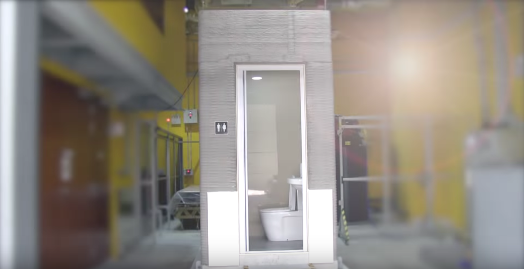 Dans leur communiqué publié le 22 mai 2019, les chercheurs de l’Université Technologique Nanyang (Singapour) ont dévoilé leur dernière création. Il s’agit de petites salles de bains imprimées en 3D dont les murs sont en béton. Plus précisément, seuls les murs en béton ont été imprimés en 3D par le biais d’un bras robotique KUKA. Le reste de l’équipement a été installé ultérieurement par une équipe humaine.