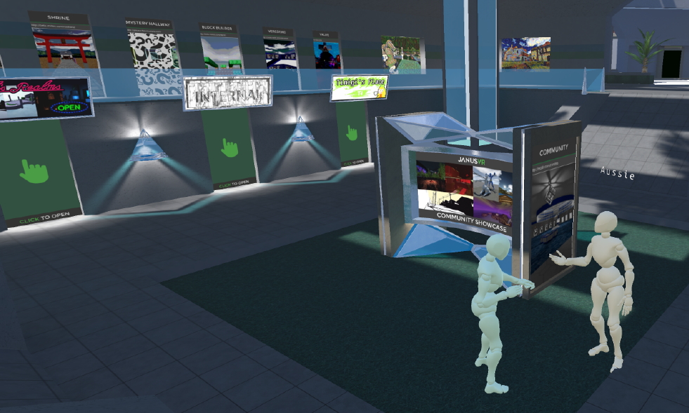 Les navigateurs de ce type sont déjà assez nombreux. Citons par exemple le Samsung Internet for Gear VR permettant de surfer sur le Web par le biais du casque Samsung Gear VR. Il y a également MozVR compatible avec Firefox et Chromium, ainsi que JanusVR, permettant d’expérimenter Internet de manière immersive puisque les pages sont des salles dans lesquelles l’utilisateur peut pénétrer (voir ci-dessous).