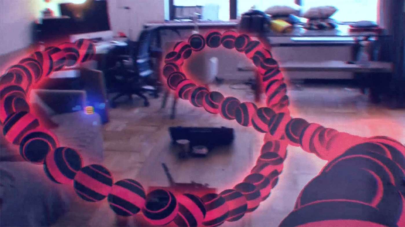 La nouveau jeu intitulé Cybersnake n’est autre qu’une adaptation de la version initiale à destination des lunettes de réalité augmentée Hololens, fruit du travail du jeune développeur américain Lucas Rizzotto. Fini le noir et blanc et la 2D, bonjour les couleurs et les reliefs ! De plus, le serpent ne consomme plus de simples points, mais des hamburgers et des crèmes glacées disséminés dans votre environnement.
