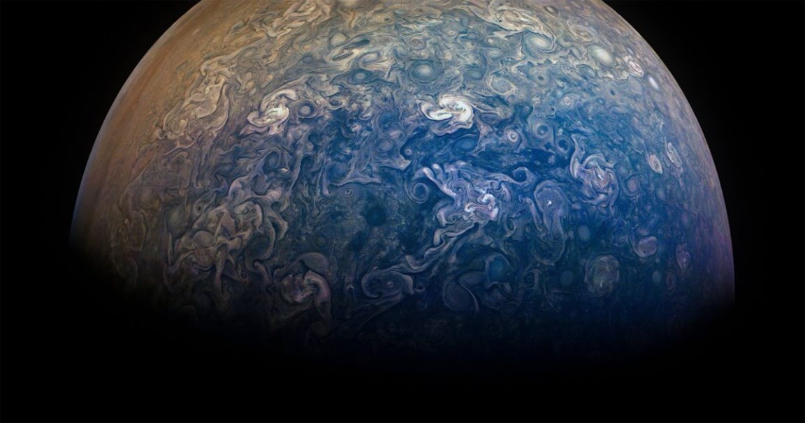 La sonde spatiale de la NASA, Juno, nous a envoyé des photographies exceptionnelles prises au-dessus de Jupiter, la géante gazeuse plus volumineuse et plus massive que toutes les autres planètes du système solaire réunies.