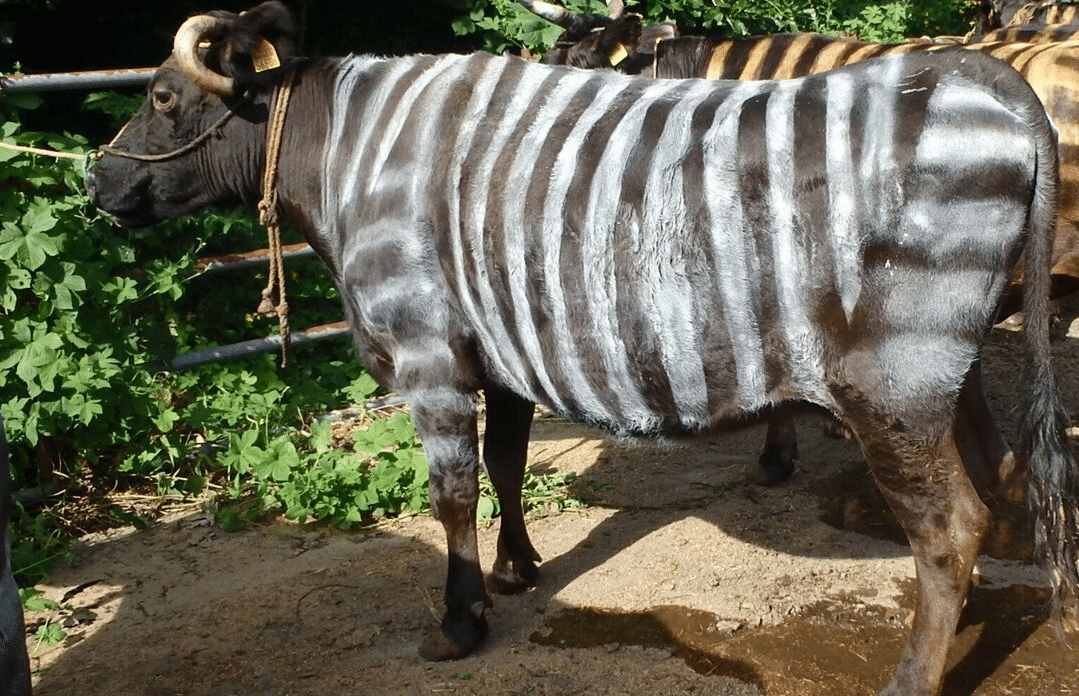 Cette étude confirme ainsi que le simple fait de peindre des rayures blanches sur les vaches permet de réduire les attaques de mouches. Comme chez les zèbres et les chevaux.
