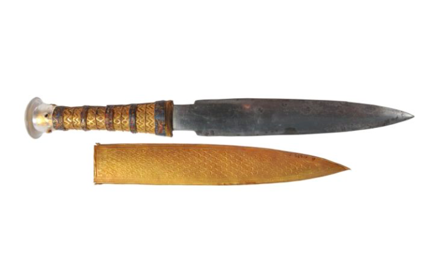 La dague a été découverte dans le sarcophage, près de la cuisse du pharaon. Accompagnée de son fourreau en or, elle se terminait par un cristal de roche au bout de sa poignée. Jusqu’à aujourd’hui, il était considéré que la lame était en fer, mais des chercheurs ont récemment précisé de quel type fer il s’agissait.