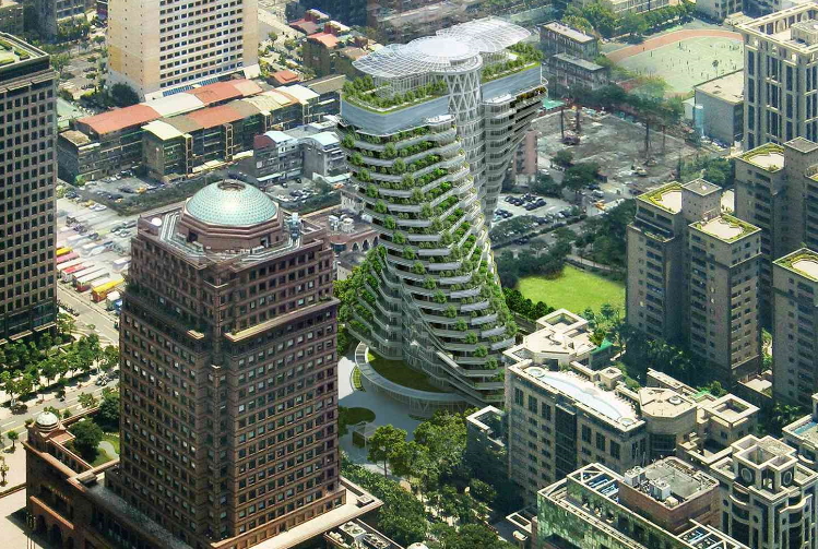 Ramener un peu de nature dans le centre de Taipei est l’idée d’un architecte belge. Ce dernier a élaboré une structure particulière : une tour de logement d’une vingtaine d’étages capable d’absorber le dioxyde de carbone.
