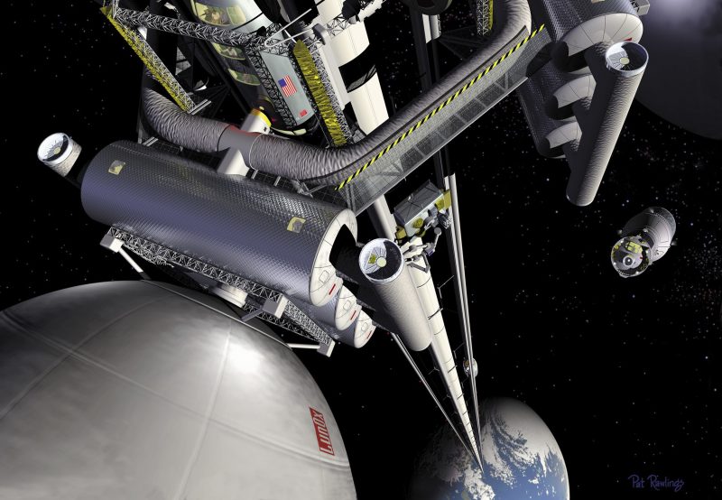 Il est des projets tellement ambitieux qu’ils sont voués à rester rangés au fond des placards de la science pendant longtemps. Parmi eux, peu sont aussi inaccessibles et colossaux que l’ascenseur spatial, encore appelé ascenseur orbital : comme son nom l’indique, il s’agit d’une structure capable de transporter hommes et matériel dans l’espace sans recourir à des fusées, à l’aide de cabines dansant sur un câble long d’au moins…40 000 kilomètres. Son but ? Réduire drastiquement les coûts engendrés par l’utilisation de fusées sur le long terme. Malgré les 120 ans qui nous séparent de l’énonciation du concept, et les progrès techniques fulgurants réalisés depuis, il semble que la conception d’un système aussi étendu et complexe ne soit pas pour demain.