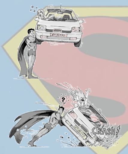 Roland Lehoucq évoque également la Loi d’échelle, stipulant que la force est proportionnelle à la puissance 2/3 de la masse. L’intéressé s’est alors lancé dans une extrapolation linéaire : si une fourmi de 10 mg soulève 1 g (cent fois sa masse), un homme de 75 kg soulève 7,5 tonnes ! Évidemment, cela est impossible dans la réalité. Par ailleurs, la force de Superman ne peut pas tout faire, et il lui incombe d’être doté d’un squelette capable de supporter d’énormes charges ainsi qu’un exceptionnel sens de l’équilibre.