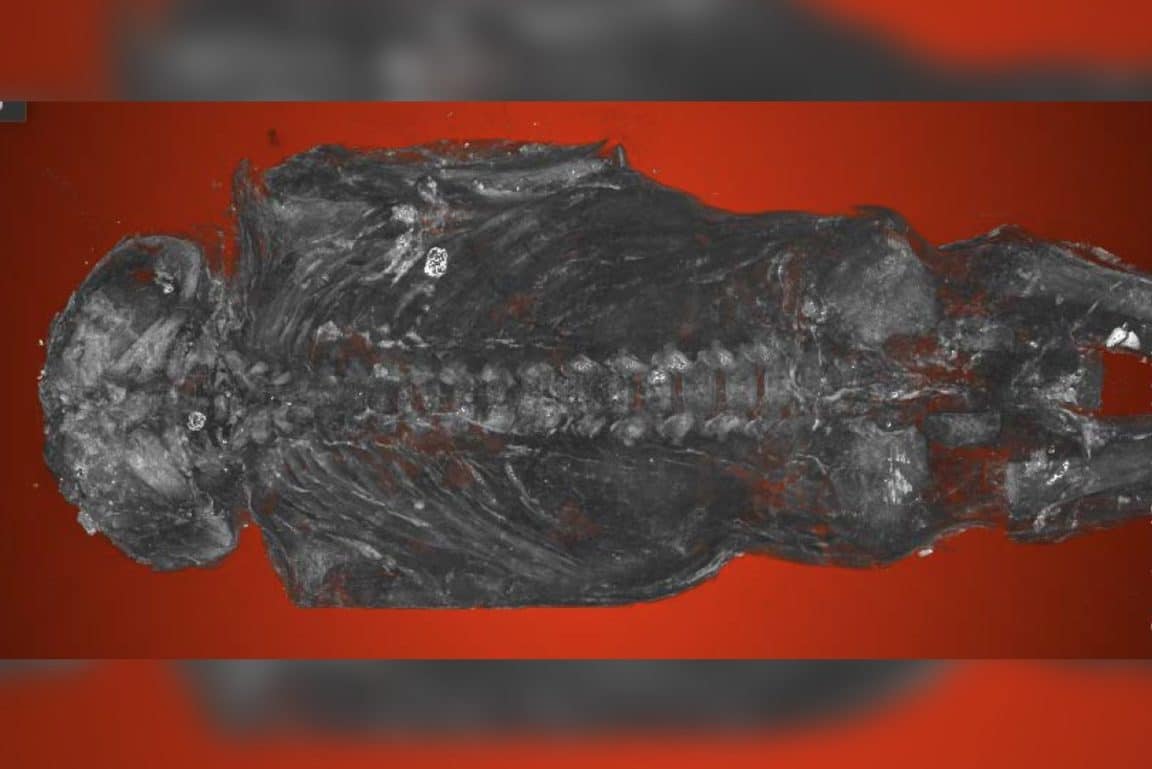 Longtemps considérée comme celle d’un faucon, une petite momie égyptienne de 24 centimètres de long, est en réalité un rare exemple de fœtus dont le crâne était gravement déformé, selon un examen mené par l’expert Andrew Nelson de l’Université Western Ontario au Canada. Des scanners de tomodensitométrie détaillés nous révèlent alors une tragédie familiale survenue il y a deux millénaires : un jeune garçon mort-né entre 23 et 28 semaines de grossesse d’une anencéphalie. « La partie supérieure de son crâne n’est pas formée », explique le chercheur dans un communiqué. « Les arcs des vertèbres de sa colonne vertébrale ne sont également pas fermés, et ses oreilles sont à l’arrière de sa tête ».