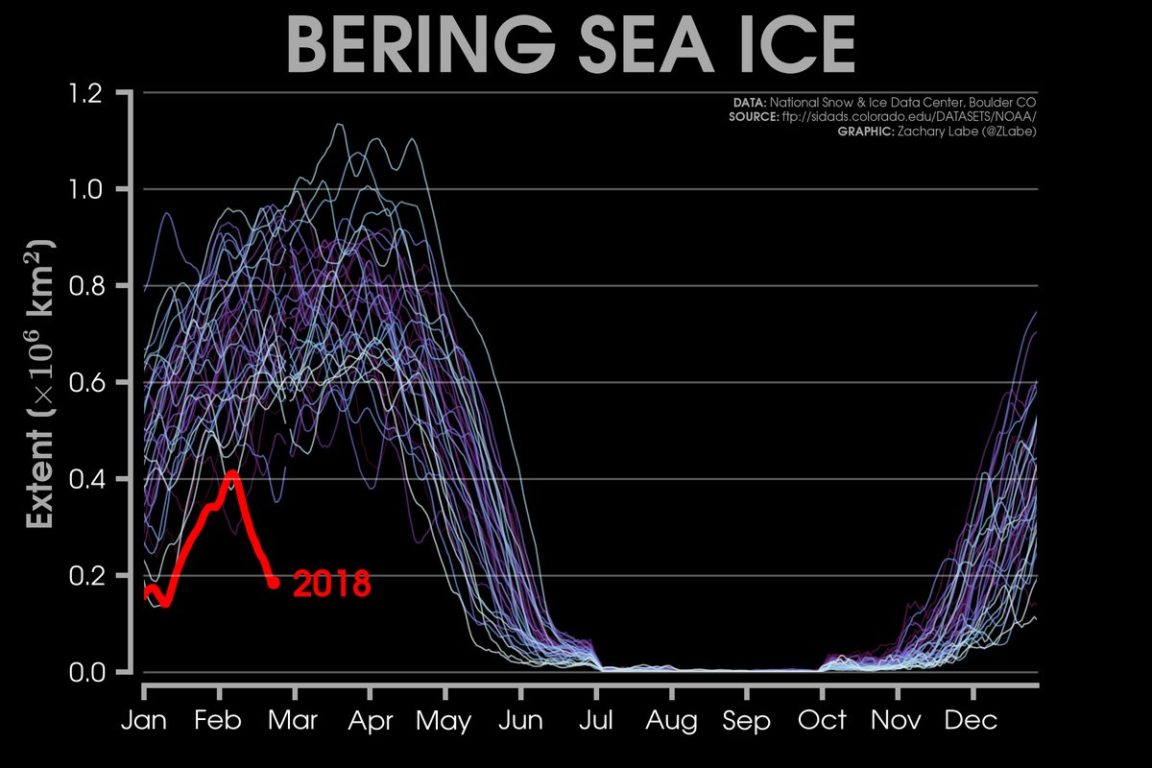 Extension de la banquise au détroit de Béring. Crédit: @Zlabe.
