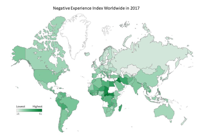 Sur le plan géographique, les rapports d’émotions négatives sont plus importants en République centrafricaine et en Irak qui subissent des tensions politiques et militaires depuis de nombreuses années. Même constat dans la région subsaharienne où certains conflits ont entraîné des « crises de soins de santé croissantes » d’après le rapport.
