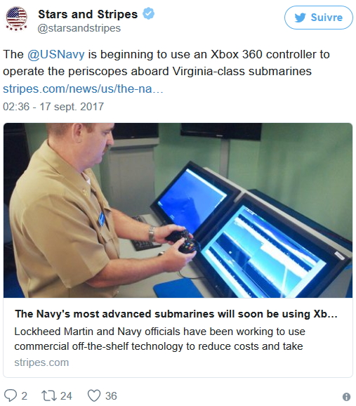 L’information prête à sourire, mais celle-ci est bien réelle. L’US Navy désire « moderniser » ses sous-marins avec des manettes de Xbox 360 selon le site Stars and Stripes traitant l’actualité militaire. Le premier bâtiment à recevoir les manettes sera l’USS Colorado dès le mois de novembre 2017.