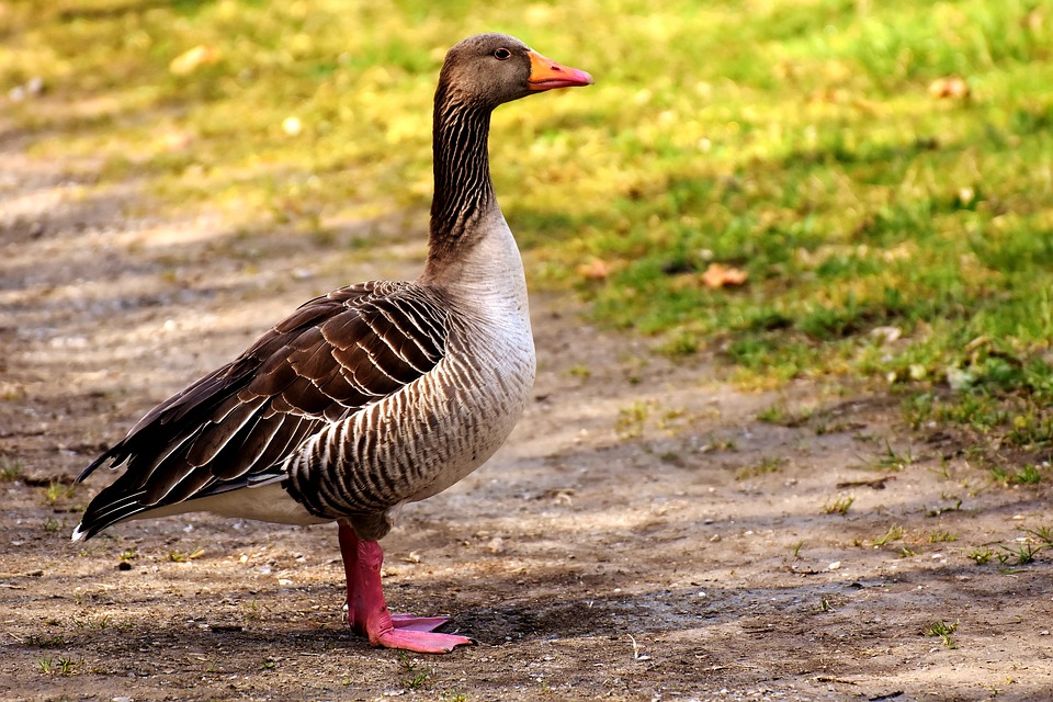 L’oie cendrée se reconnait facilement à son gros bec orange ainsi qu’à ses pattes palmées de la même couleur. Son plumage est à dominante gris-brun avec quelques reflets blancs sur le dessus. Généralement, sa taille avoisine les 90 cm, son envergure peut atteindre 180 cm tandis que son poids peut varier entre 2 et 4 kg.