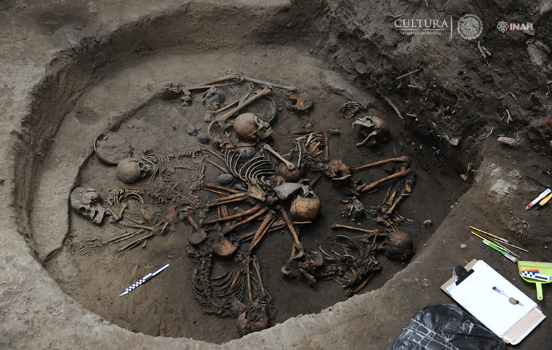 Ces squelettes ont été découverts sur un site archéologique de Tlalpan, une ville située au sud de Mexico. La tombe mise à jour fait partie d’un village antique découvert en 2006 par des chercheurs de l’Institut National d’Anthropologie et d’Histoire de Mexico (INAH). Depuis, les archéologues font découverte sur découverte.