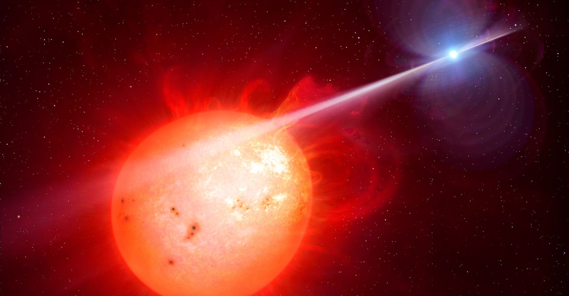 En s’intéressant au système AR Scorpii, des astronomes amateurs ont permis la découverte d’un nouveau type d’étoile binaire exotique. L’une des deux étoiles, une naine blanche, émet un mystérieux rayon en direction de l’autre, la fouettant de ses électrons.