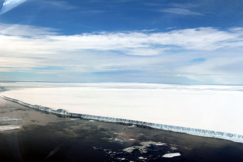 From yesterday's #IceBridge flight: The edge of Larsen C Ice Shelf with the western edge of iceberg A68 in the distance pic.twitter.com/lN4lHanIfY