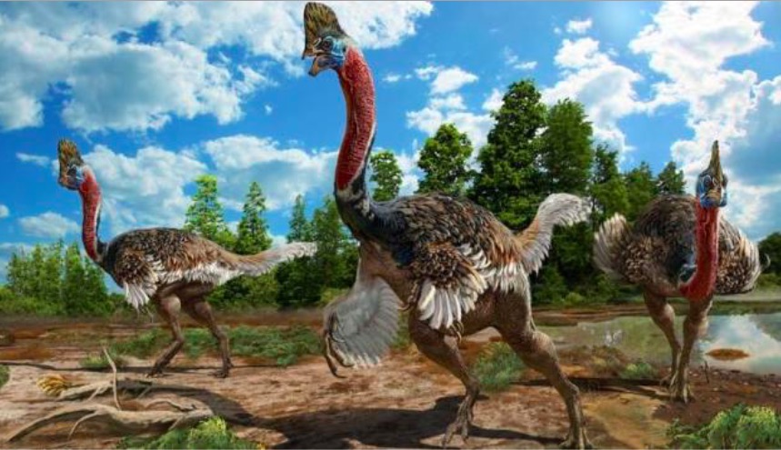 De plus en plus de dinosaures à plumes sont découverts et plus on en déterre plus les similitudes avec les oiseaux modernes sont marquées comme en témoigne cette nouvelle étude publiée ce jeudi dans la revue Scientific Reports qui détaille la découverte d’un squelette quasi complet. Affublée d’une énorme crête sur la tête pouvant mesurer jusqu’à quinze centimètres, l’animal baptisé « Corythoraptor jacobsi » vivait dans le sud-est de la Chine à la fin du Crétacé il y a 100 à 66 millions d’années, au cours de la période du Crétacé supérieur. Mesurant 1m68 de haut, le dinosaure était visiblement rapide, armé de trois griffes pointues à chaque patte lui permettant de capturer ses proies.
