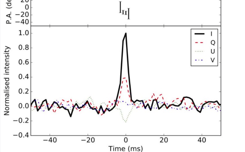 FRB 150215 est étrange. Contrairement à d’autres FRB détectés à ce jour, celui-ci fut observé par plusieurs télescopes à travers le monde, mais aucun n’a détecté de signal ou de trace de lumière derrière. « Le sursaut a été suivi par 11 télescopes à travers le monde pour rechercher d’éventuelles émissions radio, optiques, de rayons X, de rayons gamma et de neutrinos », rapporte Emily Petroff, de l’Institut néerlandais pour la radio astronomie et principale auteure de ce papier. « Aucune émission transitoire ou variable n’a été associée à l’éclatement, et aucune impulsion répétée n’a été observée durant les 17,25 heures d’observation ». D’autant que ce signal aurait apparemment traversé une région ultra dense de la Voie lactée avant de parvenir jusqu’à la Terre. Les interférences auraient donc dû être nombreuses, mais ici, rien.