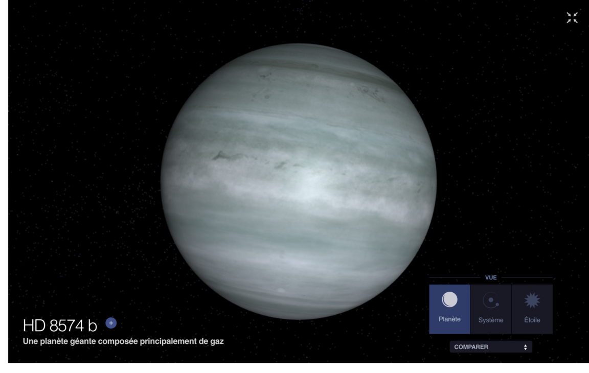 Concernant la planète (HD 8574 b), il s’agit d’une géante de gaz environ deux fois plus massive que Jupiter. Elle évolue à 0,76 UA de son étoile (une UA équivaut à la distance Terre – Soleil, soit environ 150 millions de km), et en fait le tour tous les 227 jours. La planète se situe également dans la zone habitable du système.