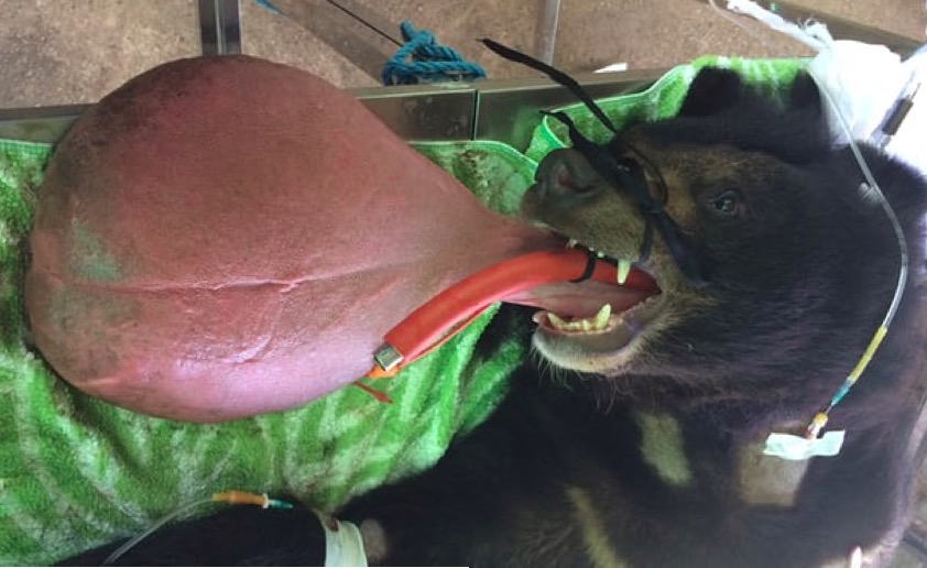 Nyan htoo, un ours noir d’Asie dont la langue pesait 3 kilos, vient d’être opéré avec succès en Birmanie. L’animal recueilli par des moines birmans alors qu’il n’était encore qu’un ourson, souffrait d’une déformation rare de la langue.
