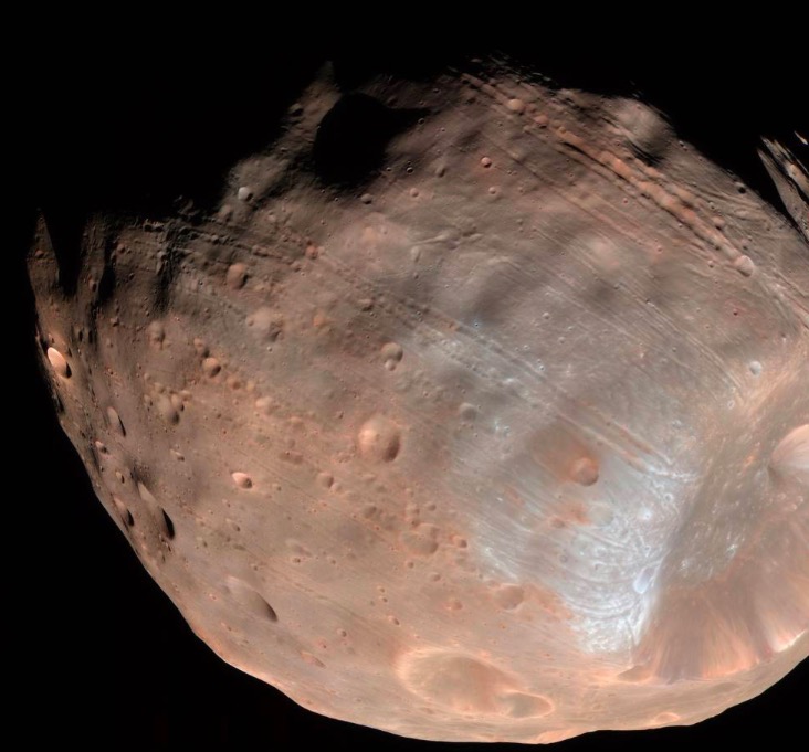 Phobos est l’une des deux lunes de Mars, un minuscule corps céleste qui orbite très près de la planète rouge au même titre que sa petite sœur, Déimos. Déjà condamnée à se disloquer, elle formera à l’avenir un anneau planétaire. Selon une nouvelle étude, ce processus de destruction ne sera pas le premier de cette lune ni le dernier.