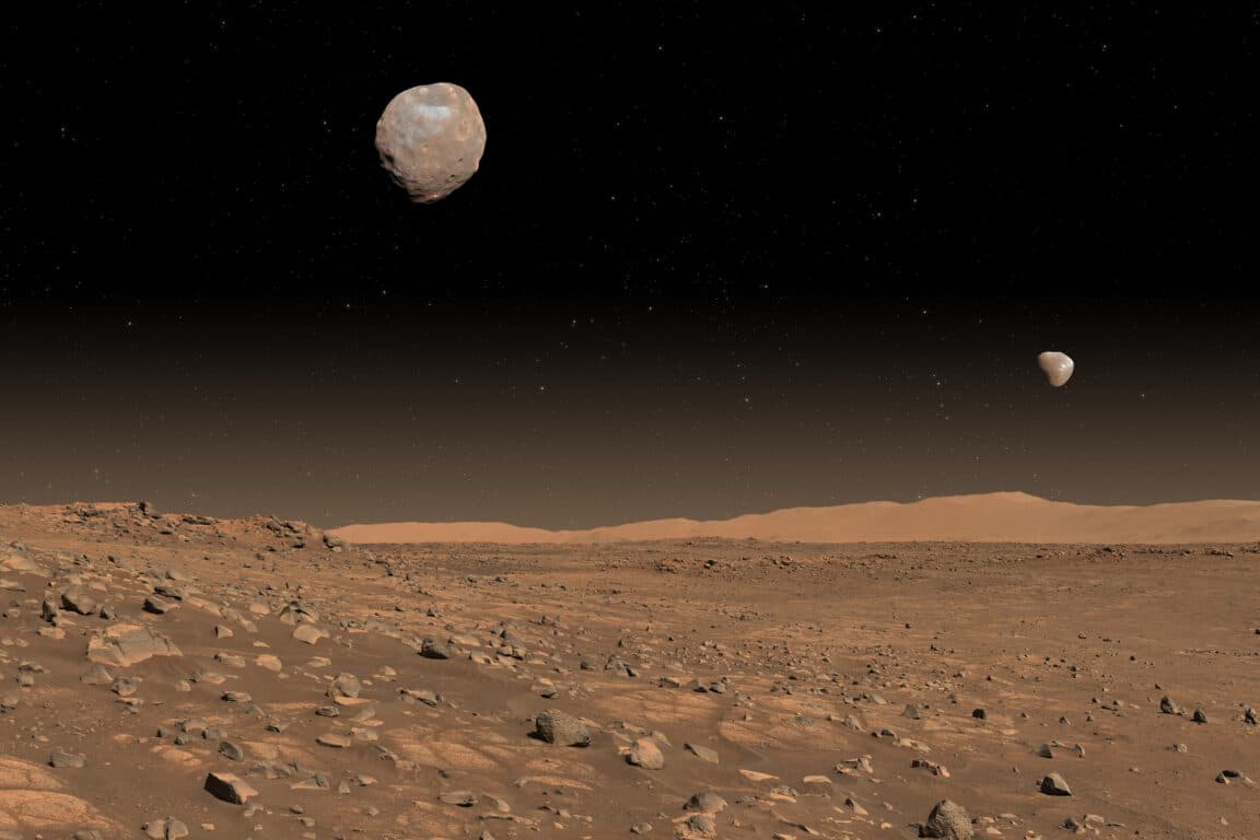 L’origine de Phobos et de Deimos est ainsi débattue. Deux théories principales existent : l’une propose qu’elles se sont formées à partir de débris résultant d’une collision géante avec Mars, l’autre qu’il s’agit d’astéroïdes capturés. Chacune de ces théories a ses limites : l’hypothèse des astéroïdes ne rend pas bien compte de leur orbite presque circulaire, tandis que celle des débris ne correspond pas totalement à leur composition.