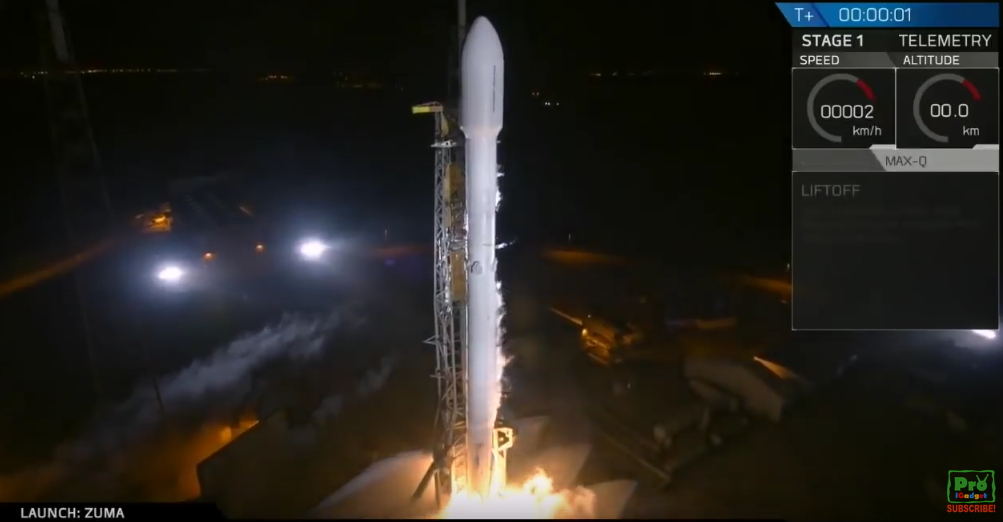 Alors que la presse a posé de nombreuses questions sur la nature de ce lancement, aucune n’a trouvé de réponse satisfaisante puisque seuls le nom de la mission – Zuma – et les détails du lancement ont été dévoilés. La fusée Falcon 9 de SpaceX a décollé à 20 h heure locale du site de Cap Canaveral en Floride, comme l’attestent les images diffusées par la société d’Elon Musk (voir la vidéo en fin d’article). Après la mise sur orbite de l’engin inconnu, le premier étage de la fusée a été ramené avec succès et est revenu se poser près du site de lancement huit minutes plus tard.